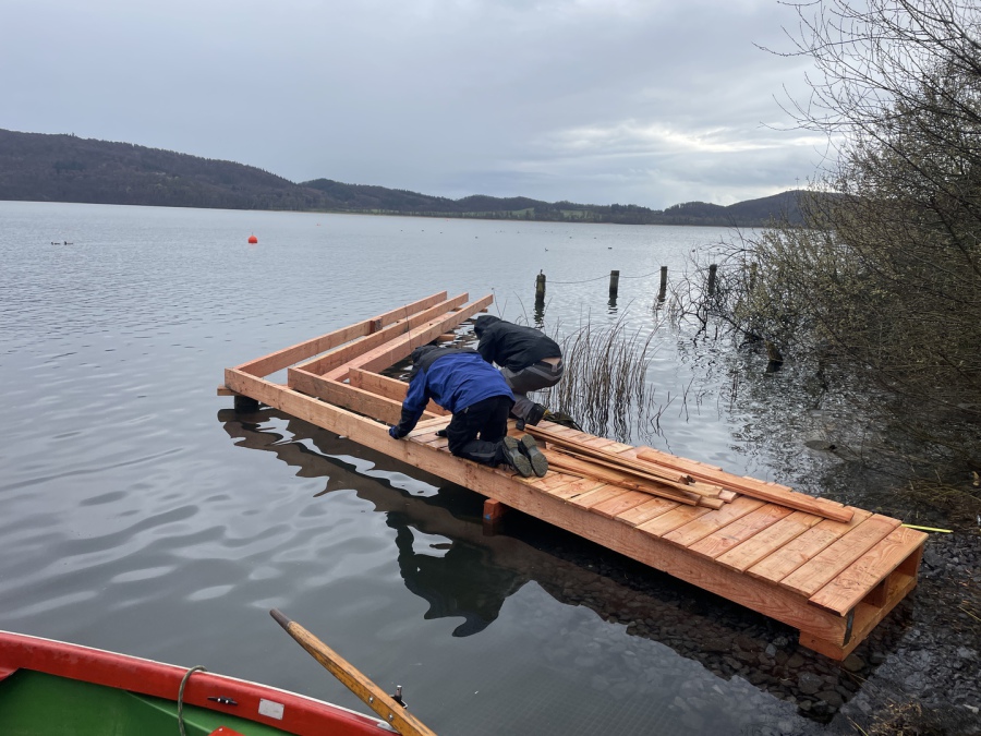 Trotz wirklich ungemütlicher Bedingungen beteiligten sich zahlreiche SCLMer am ersten Arbeitsdienst der Saison unter der Leitung von Peter Müller. An besonderen Arbeiten stand die Erneuerung des Jugendstegs, die Unterfütterung der Jetonpritsche und das Auswintern der Clubboote an. Als das Wetter so richtig hässlich wurde konnte sich im Clubhaus mit warmen Essen und Kuchen gestärkt werden. Der April kommt nicht, er war schon da.....